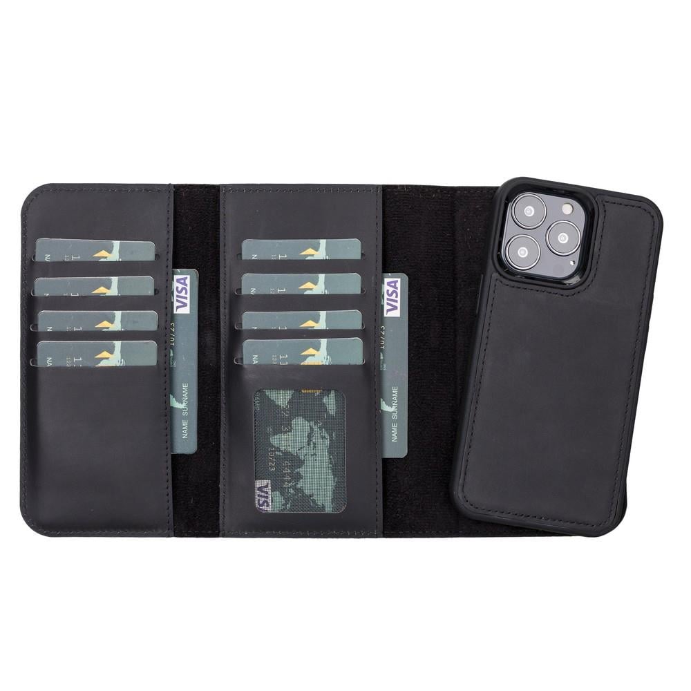 Apple iPhone 13 Pro Uyumlu Deri Cüzdanlı Kılıf Santa G1 Siyah (SA-01-SANT-G001N-IP13P-00)