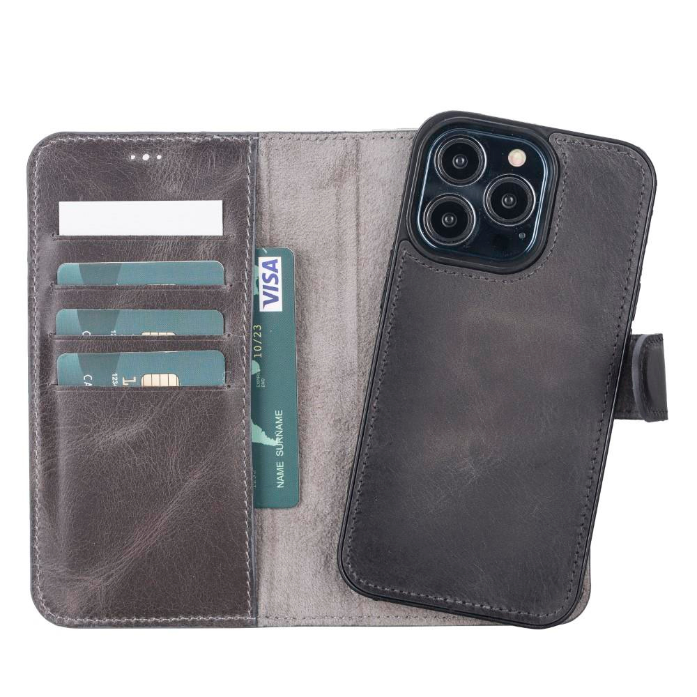 Apple iPhone 13 Pro Uyumlu Deri Cüzdanlı Kılıf VS4EF Gri (LO-01-MW00-VS04E-IP13P-00)