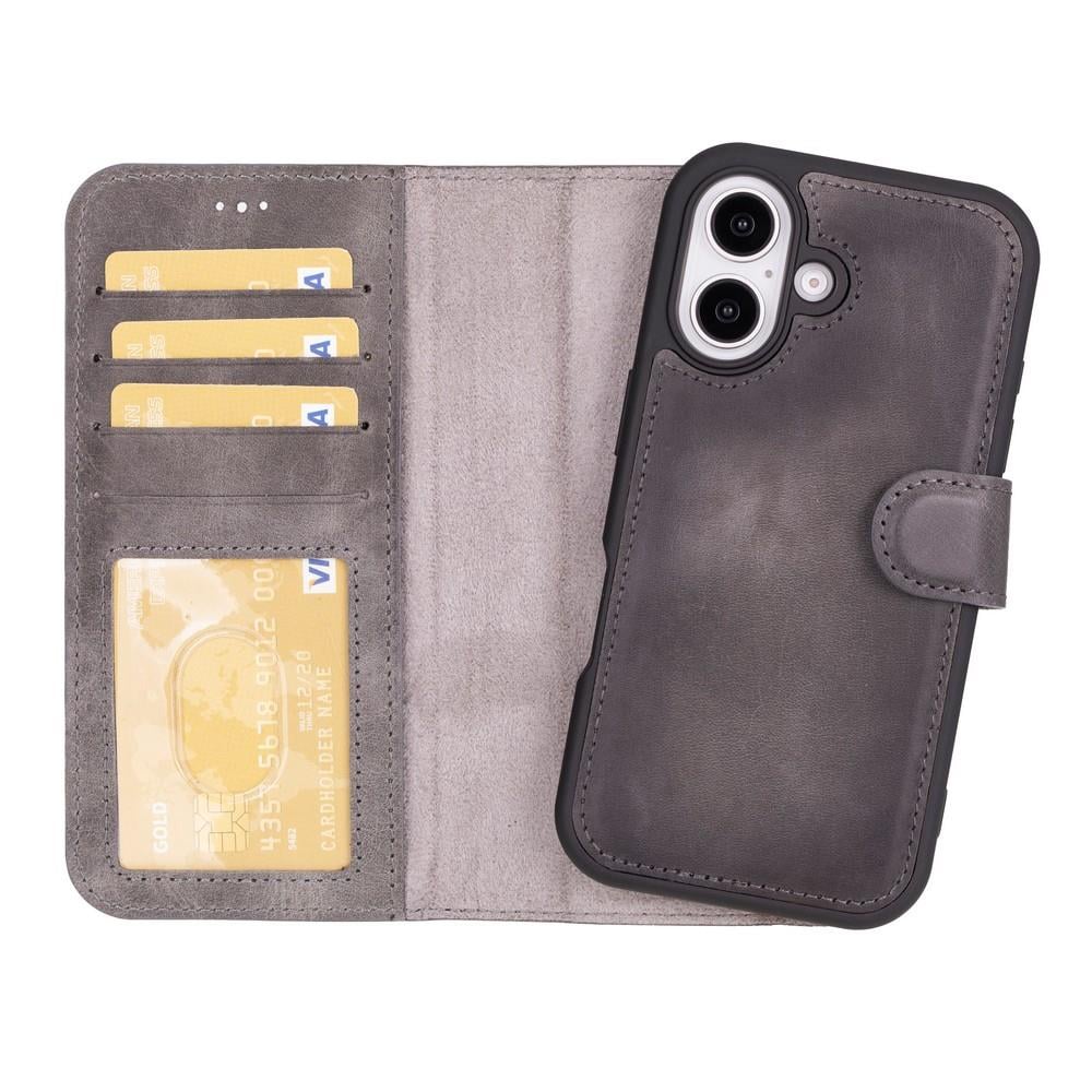 Cep Telefonu Aksesuarları Apple iPhone 16 Plus uyumlu, Hakiki Deri, El Yapımı, Cüzdanlı Kılıf, Gölgeli Gri Satın Al