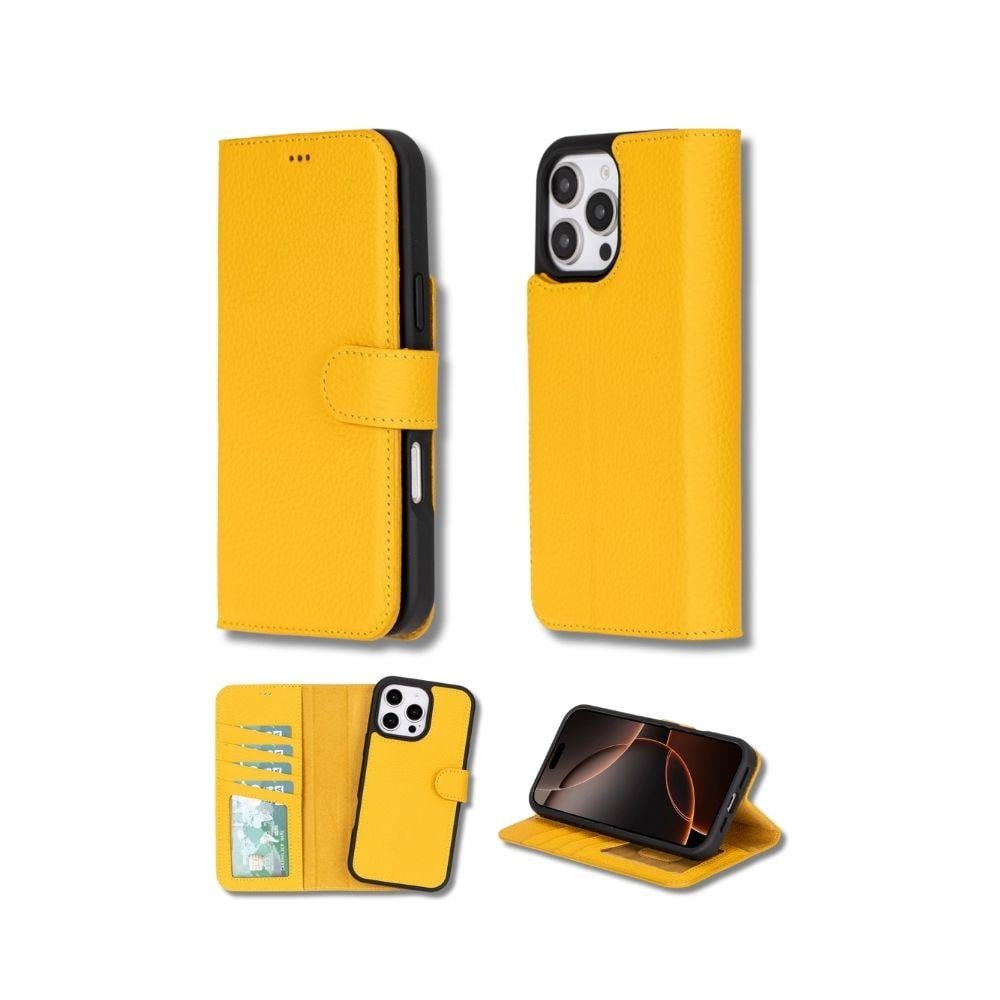 Cep Telefonu Aksesuarları Apple iPhone 16 Pro uyumlu, Hakiki Deri, El Yapımı, Cüzdanlı Kılıf, Limon Sarı Satın Al