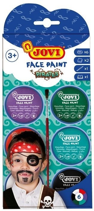 JOVI 174O Krem Yüz Boyası Korsan Seti, çocukların korsan temalı kostüm partilerinde yüzlerini eğlenceli ve yaratıcı şekillerde boyamalarını sağlar. Set, krem yüz boyası, kullanımı kolay bir fırça ve sünger ile birlikte sunulmaktadır. Toksik olmayan ve cilde zarar vermeyen formülü ile çocuklar için güvenli ve pratik bir üründür.