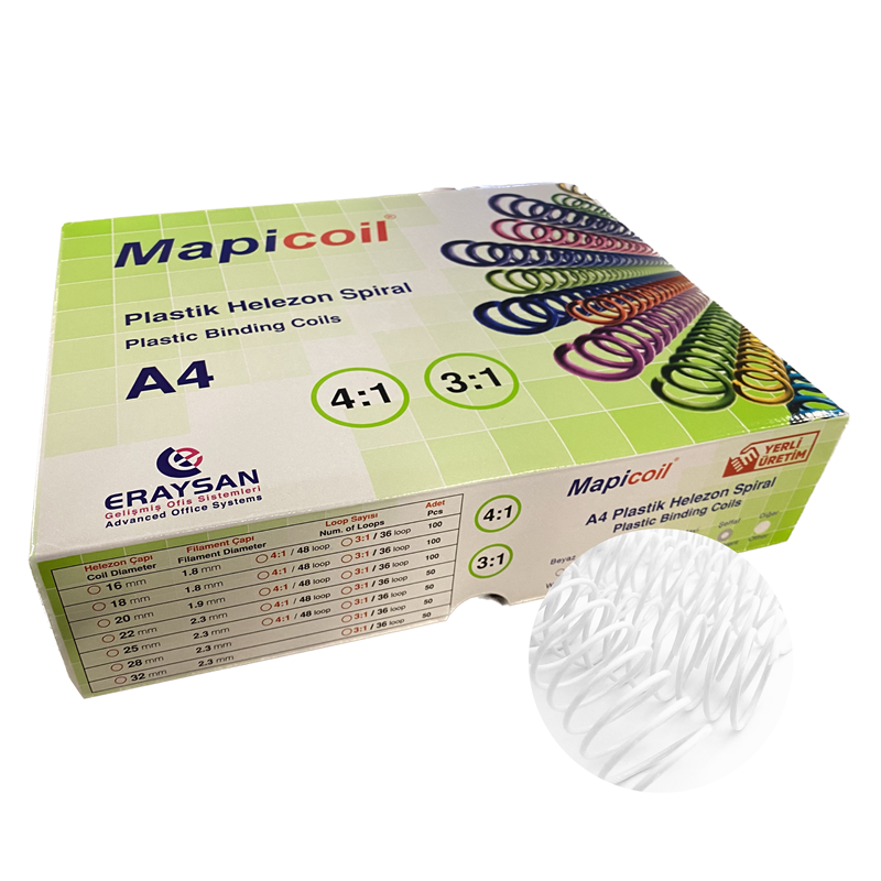MAPİCOİL 3:1 PLASTİK HELEZON SPİRAL 45MM BEYAZ 50 AD. 36 LOP (2354500)