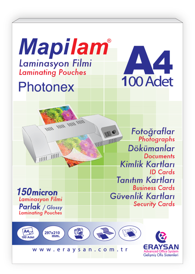 Laminasyon Filmleri MAPİLAM 150 MİCRON SICAK PHOTONEX LAMİNASYON FİLMİ (A4) 100 LÜ Satın Al