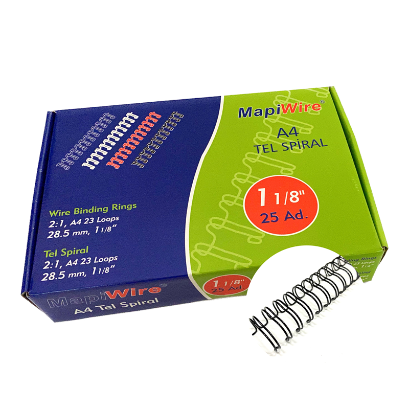 Mapiwire-2:1-1.1/8 Kutu Tel Siyah  25 Adet 1 1/8 (23.0 mm) 2:1 sistem (23 loop) 25 Adet