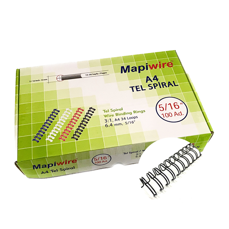 Mapiwire 5/16 Kutu Tel Siyah 100 Adet Ciltleme Kalınlık        : 6.4 mm Yaprak Adedi            : 15-30 (70 gr kağıt) Pakette                     : 100 adet