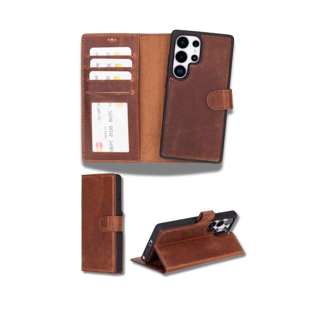 Cep Telefonu Aksesuarları Samsung Galaxy S25 Ultra uyumlu, Hakiki Deri, El Yapımı, Cüzdanlı Kılıf, Antik Kahve Satın Al