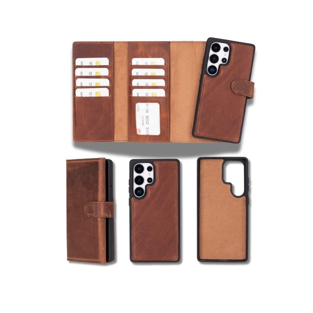 Cep Telefonu Aksesuarları Samsung Galaxy S25 Ultra uyumlu, Hakiki Deri, El Yapımı, Cüzdanlı Kılıf, Antik Kahve Satın Al